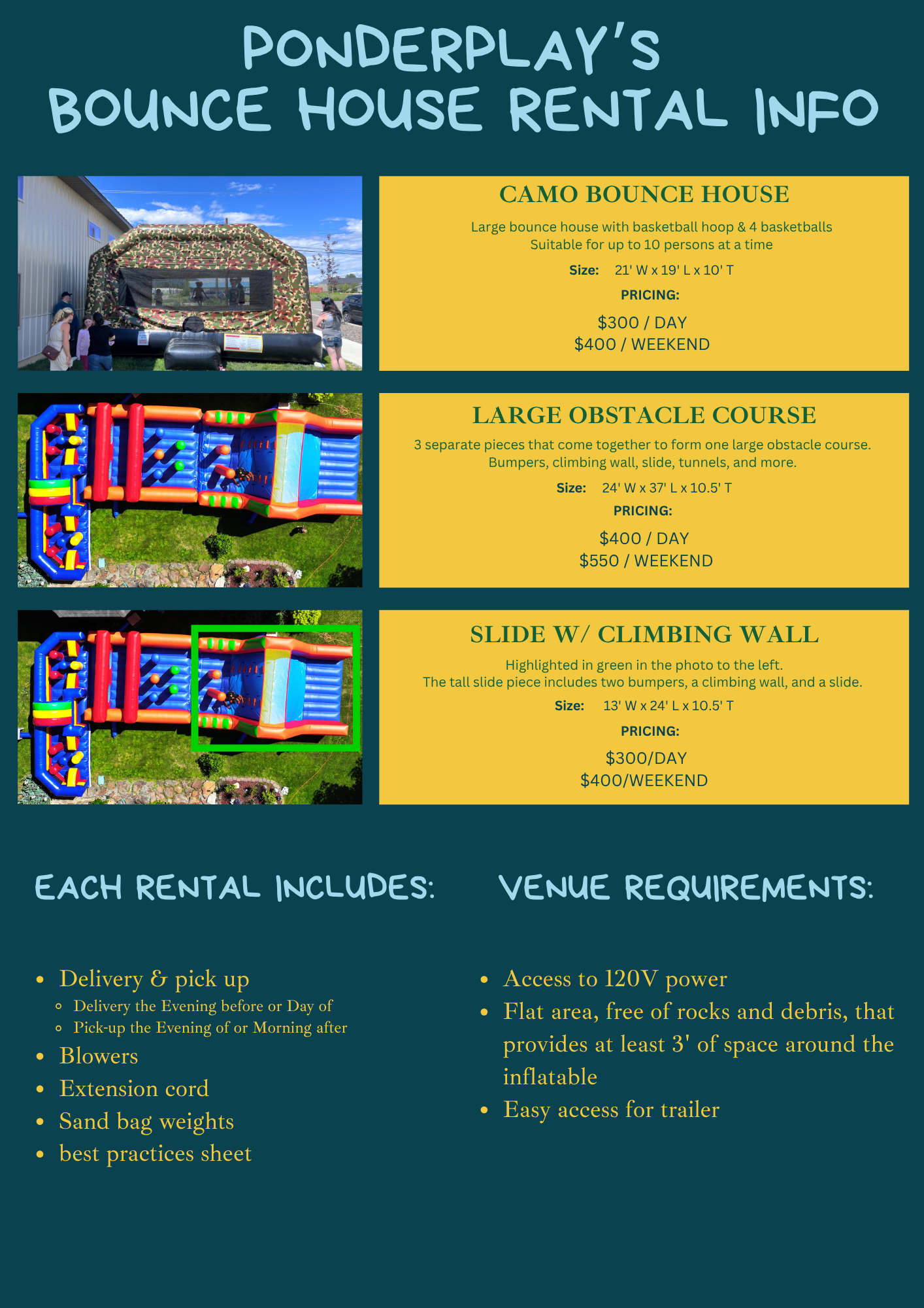 Let’s get bouncy! We are excited to offer three options for bounce house rentals: